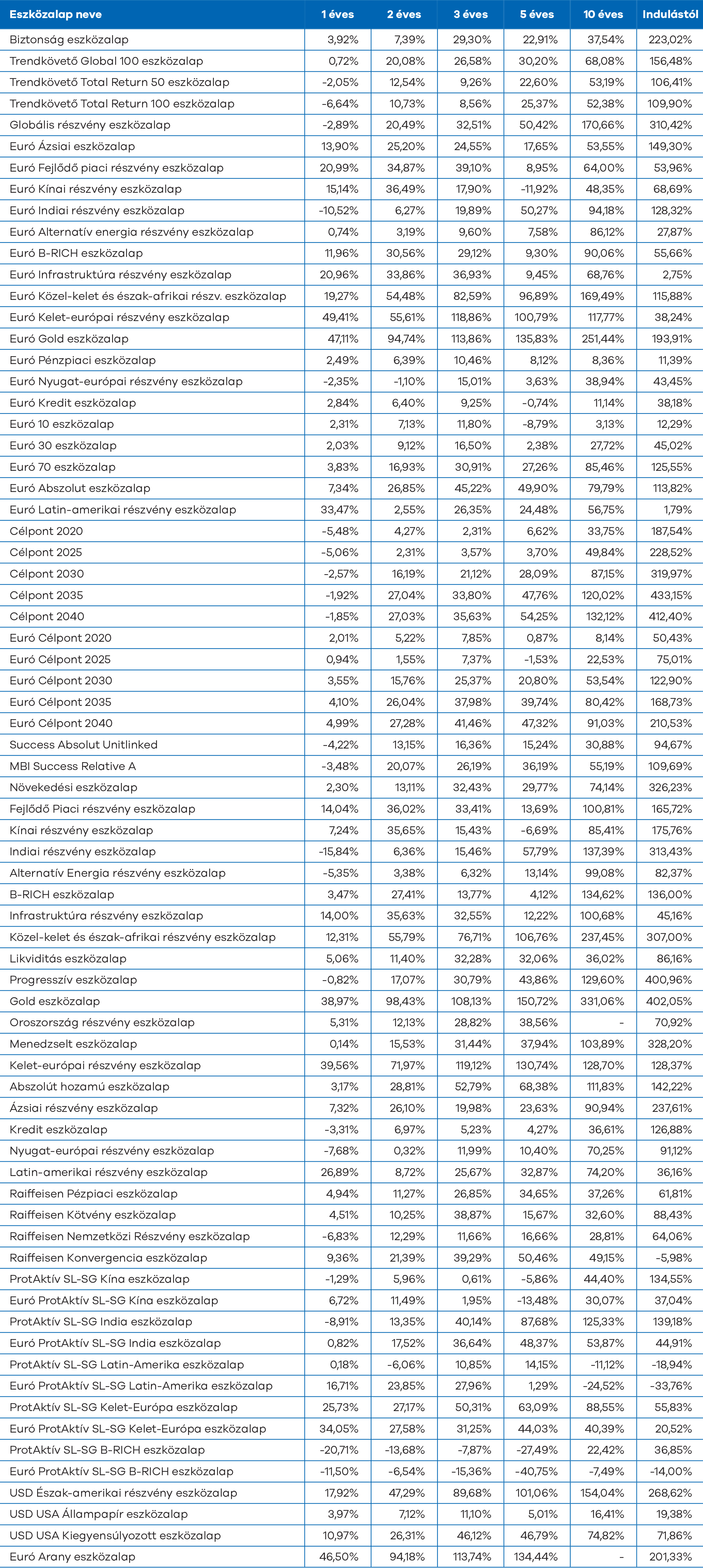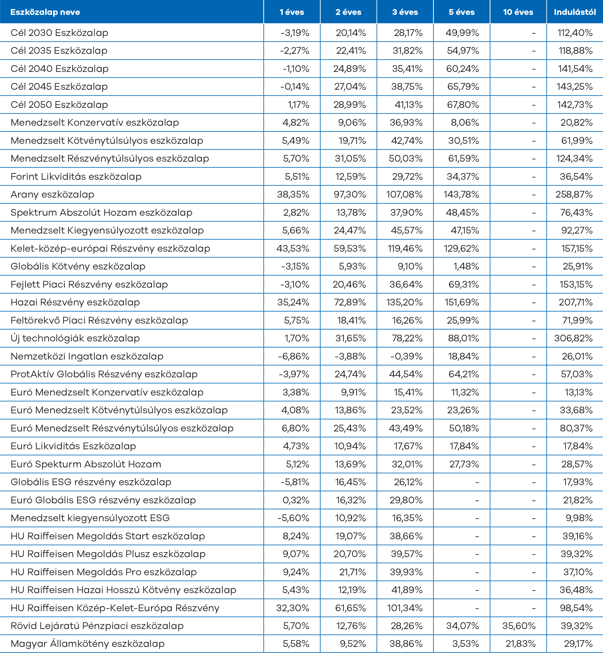 Az eszközalapjaink könnyebb összehasonlíthatóságát a hozamokat vizsgáló teljesítményméréssel szeretnénk biztosítani.