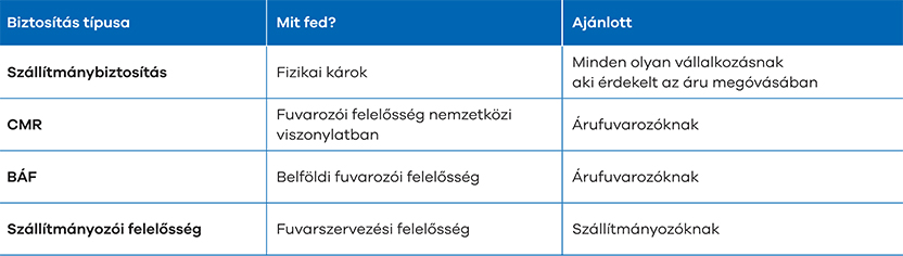 A szállítmánybiztosítások megköthetők egy útra szólóan, valamint keretszerződés formájában.